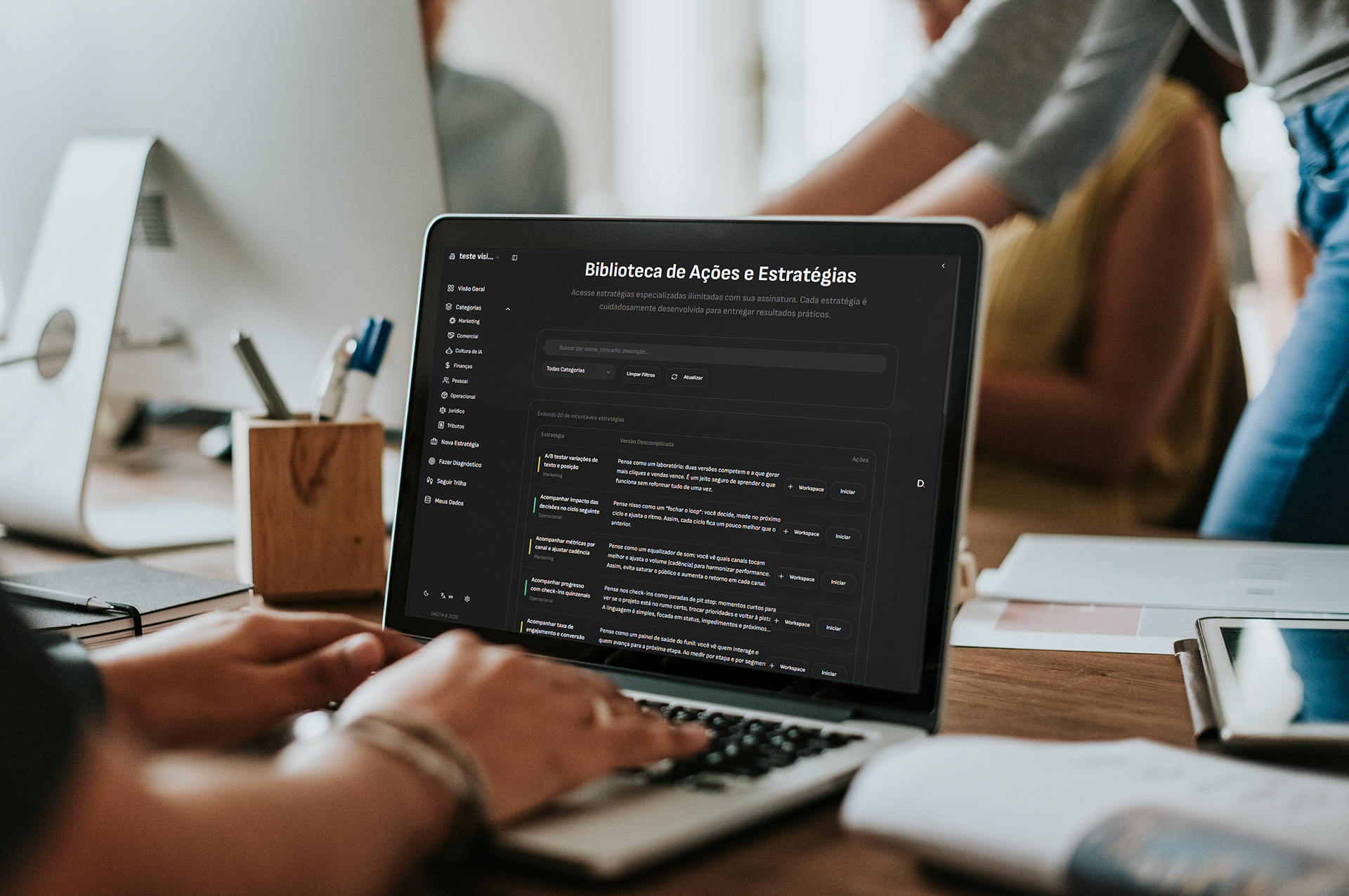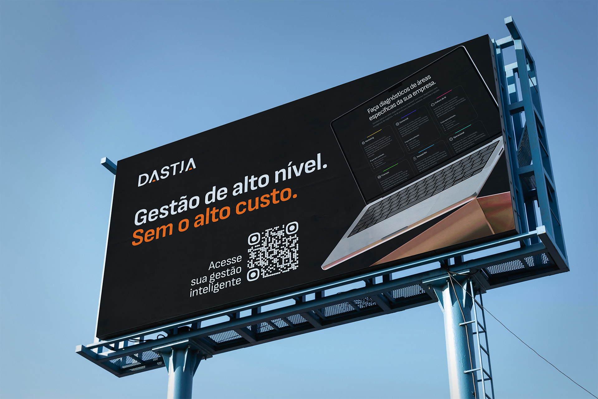 Dastia is an innovative platform that democratizes high-level management through artificial intelligence, making it accessible to small and medium-sized businesses. Positioned as a disruptive solution in a complex and expensive market, the company combines business intelligence, strategic data, and AI to deliver technical excellence at viable costs. The brand was built to convey the company's innovation and technology in a minimalist and objective way. The application of the visual identity on the Dastia platform follows the concept of user-centered design, providing a simple and intuitive usability experience for users.